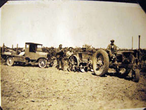 - Walter Mark Oakley driving tractor with employees, using a pre 1924 truck and planting potatoes, 1935.